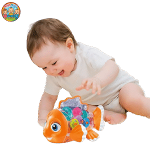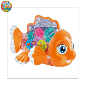 🐟 ট্রান্সপারেন্ট গিয়ার ফিশ টয় – বেবি লাইটস ও মিউজিক সহ